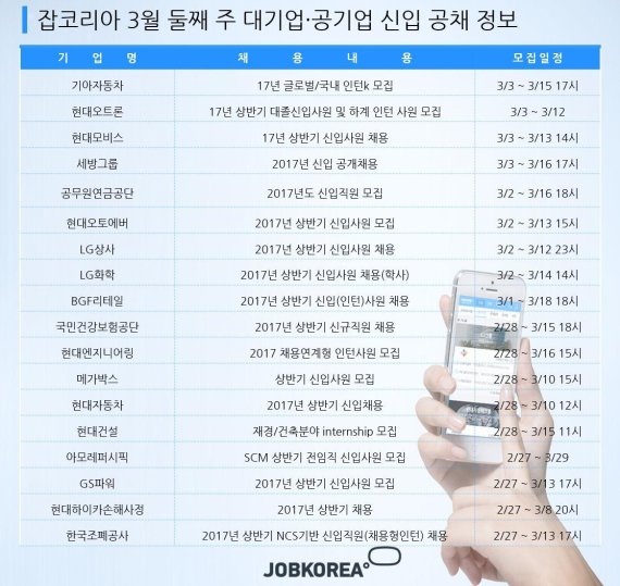 3월 둘째 주 현대자동차, LG화학, BGF리테일 등 신입직 모집
